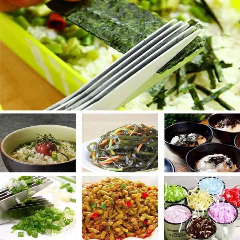 Ciseaux de cuisine en acier inoxydable à 5 couches – Parfaits pour hacher les oignons verts, les légumes, les herbes et les épices – Fournitures de cuisine essentielles.